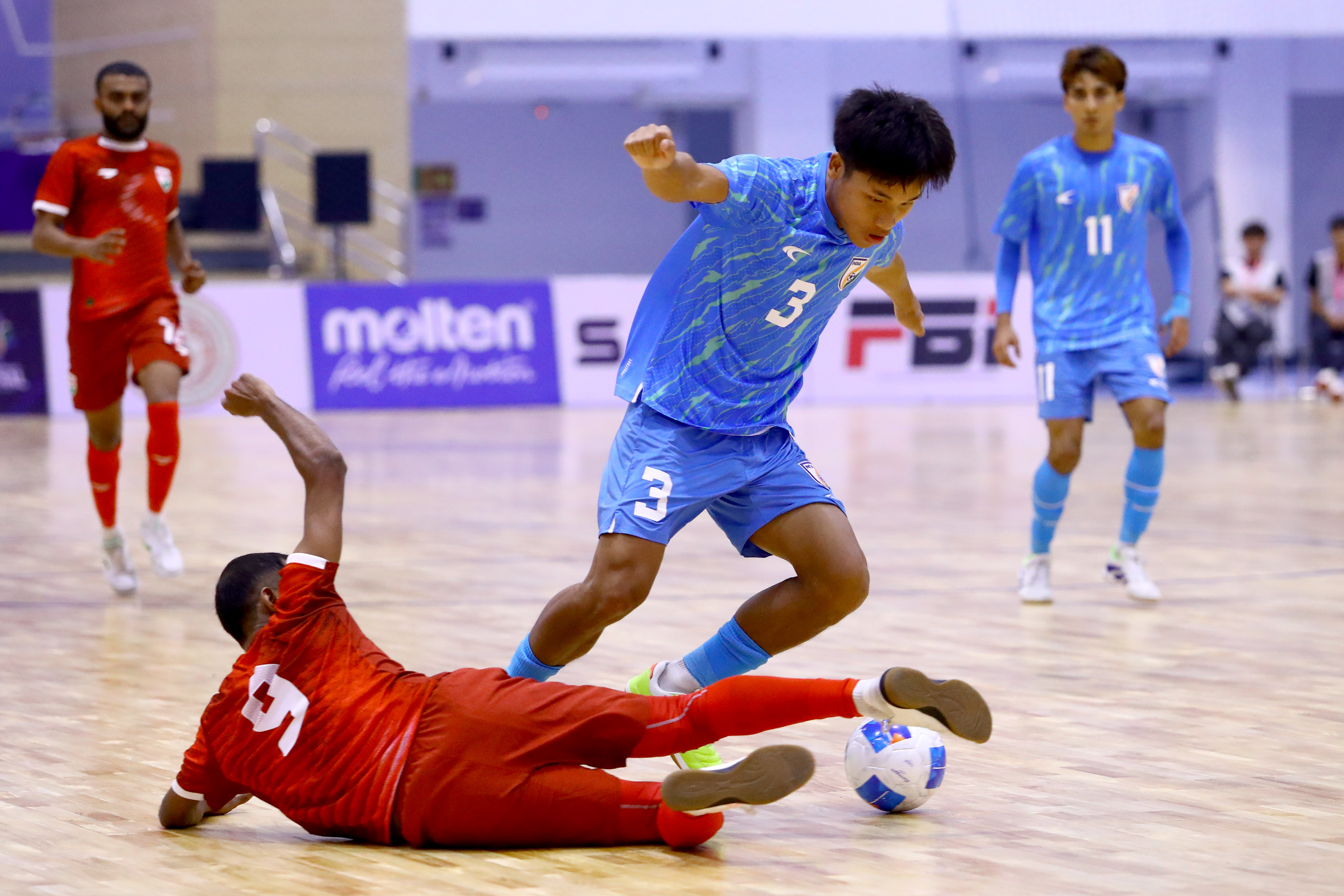 With the deficit growing, India pushed numbers forward in search of a response. However, the attacking risk only exposed further vulnerabilities. In the 30th minute, Imran ruthlessly completed his brace, calmly volleying the ball into the unguarded net while India were on a power play.