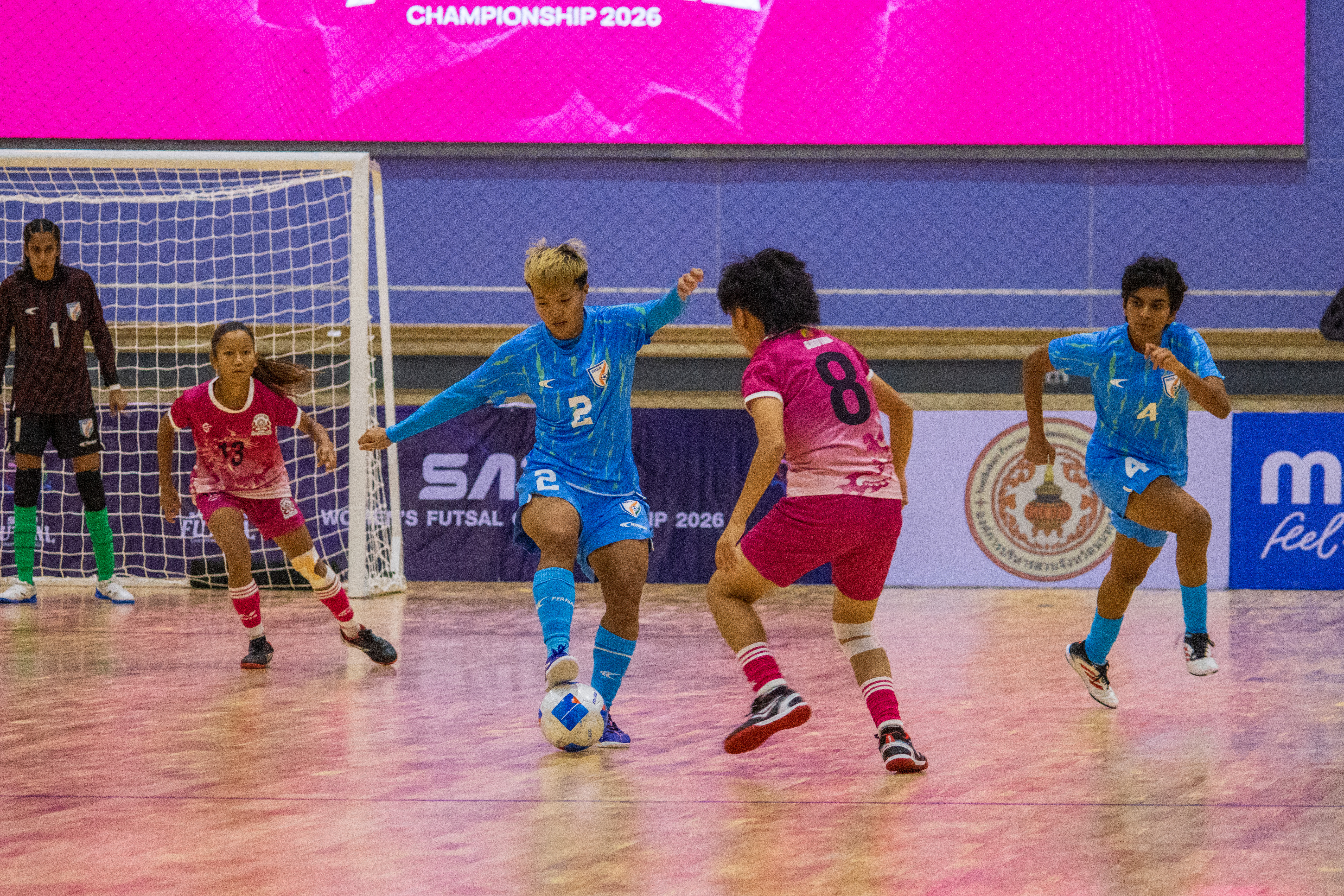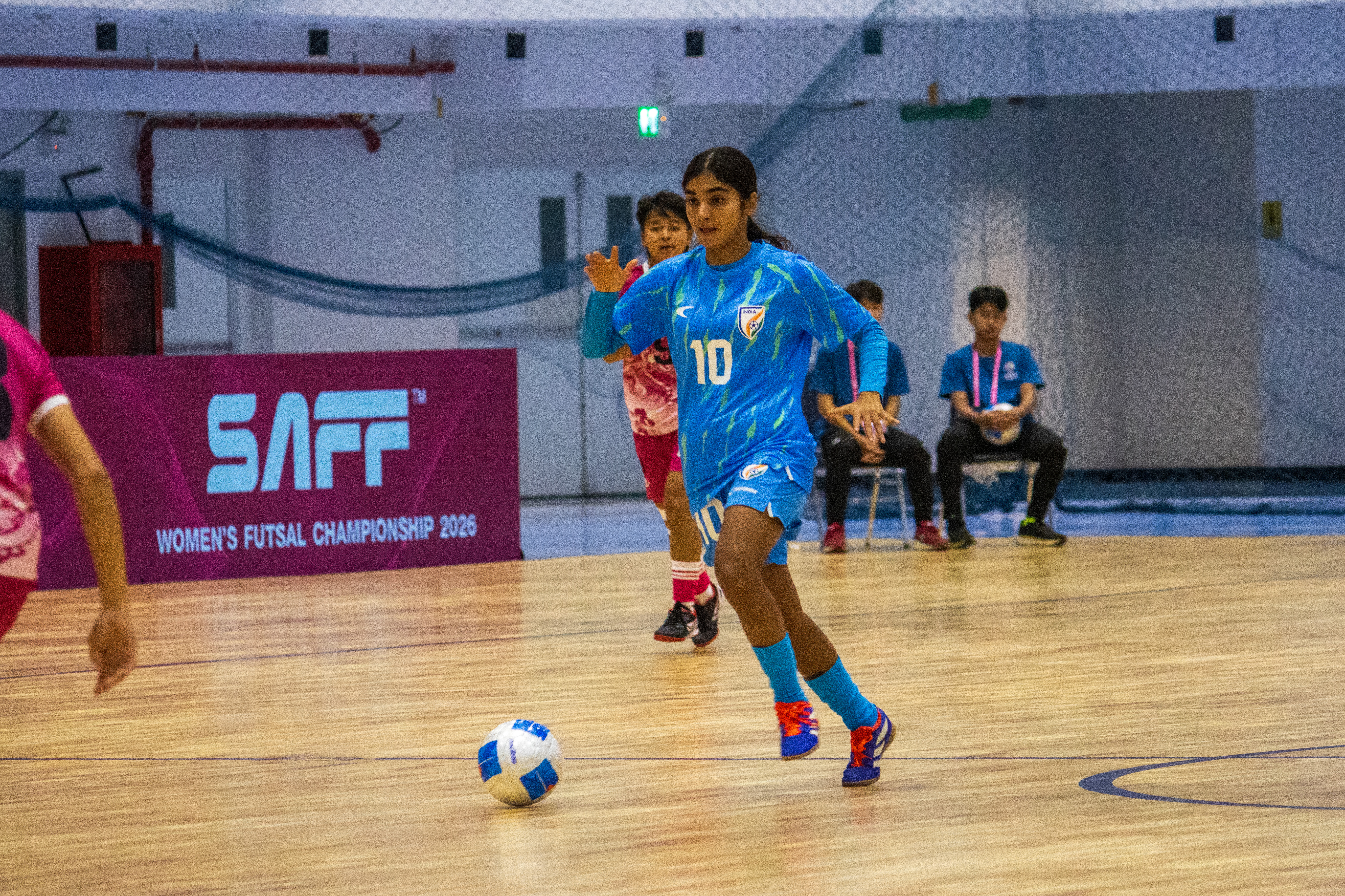 The Futsal Tigresses nearly took the lead early on when an outstanding diving save from Bhutan goalkeeper Sangita Monger met Diti Kanungo’s well-struck effort. India continued to create openings, with Achom Degio and Khushbu Saroj both testing Sangita, who proved equal to the task each time.