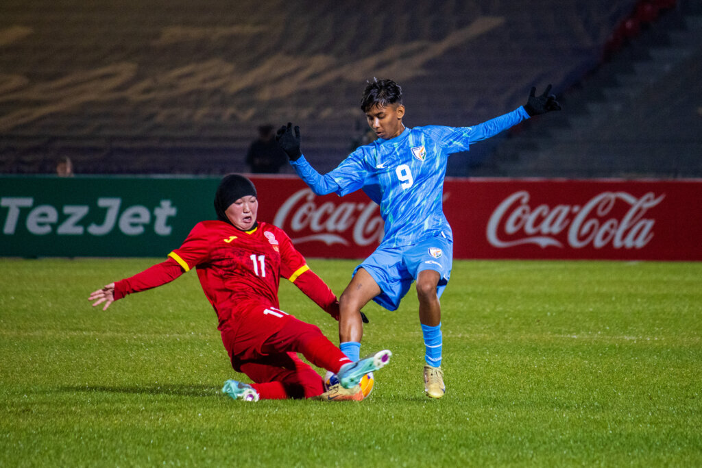 But the hosts responded quickly. Just six minutes later, in the 33rd minute, Saiakbaeva capitalised on a moment of hesitation from India’s backline. A low cross from Sumaiia Makhamatsalieva wasn’t dealt with cleanly by Divyani Linda, whose clearance fell kindly to Saiakbaeva. She lashed home a powerful right-footed strike, drawing the scores level and giving Kyrgyz Republic renewed belief.