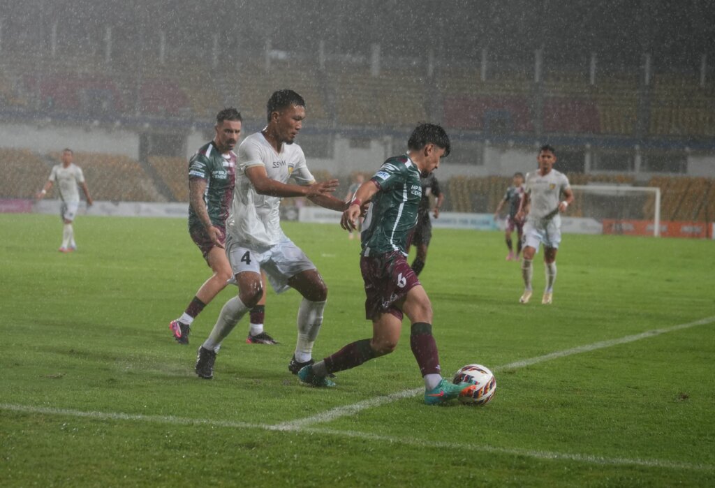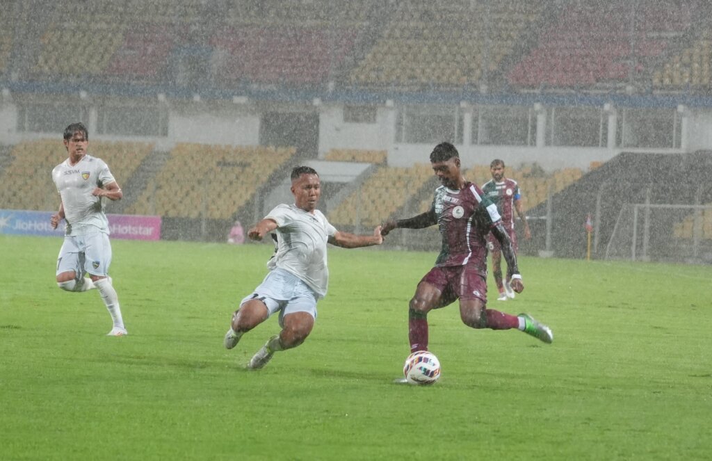 The first half of the clash turned into a slippery challenge as the rain Gods decided to be merciless, testing both sides’ balance and control. Yet, Mohun Bagan SG held the defence line comfortably through Thomas Aldred, Alberto Rodríguez, and Mehtab Singh, while Apuia and Anirudh Thapa pulled the strings in the midfield, attempting to stretch the Chennaiyin defenders and create openings.